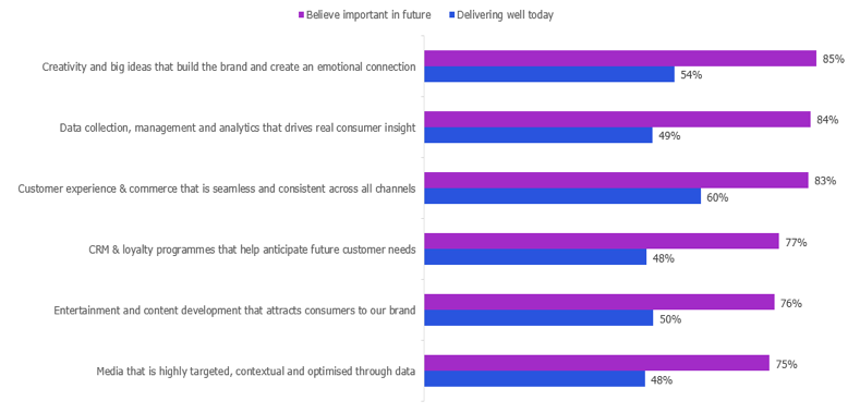 - Significant gaps are emerging between perceived levers of future marketing success and current capabilities – with the challenge most acute in data collection, management and analytics