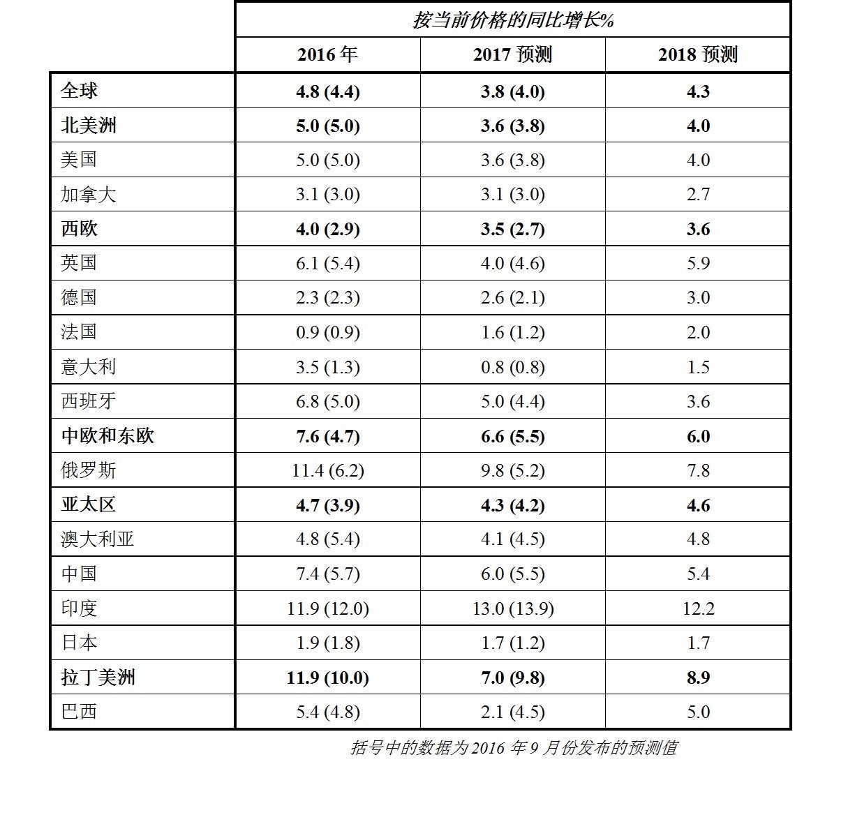 • 新广告支出增长预测对2017年持谨慎态度,2018年预计有所改善