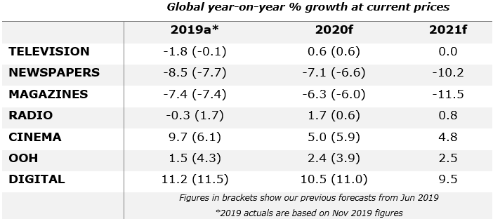 - Global events boost ad spend growth to 3.9% in 2020, up from 2.6% in 2019.