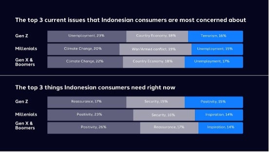 Delving into the psyche of SEA consumers, the report unveils a rich tapestry of emotions interwoven with economic apprehensions. While concerns over the economy, climate change, and unemployment echo throughout the region, Indonesian consumers, in particular, express a heightened sensitivity towards job security.