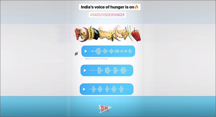 The Swiggy ‘Voice of Hunger Challenge’, created by Dentsu Webchutney, was an Instagram campaign challenging users to replicate the shape of food with the voice note feature on their mobiles. Users would record their voice, attempting to get the resulting sound-wave visualisation to look like 5 different delicious foods including a Kebab Skewer and pancakes. Successful challengers were in with a chance of winning a year’s supply of food vouchers from Swiggy. The campaign saw 10,000 entries in one day and increased Swiggy’s follower base by 30,000.