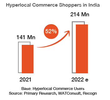 According to the report, this format of e-commerce has seen a huge surge of customers in both metros and beyond. Currently, there are around 141 million hyperlocal commerce shoppers in India, which is 48% of all e-commerce users. This number of hyperlocal commerce shoppers will increase by 52% to reach 214 million by the end of 2022.