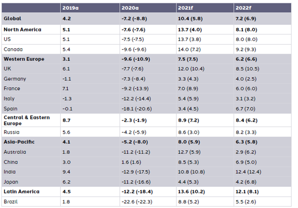 • All regions forecast to return to growth in 2021 with Canada, the US and Australia expected to be fastest growing markets in 2021