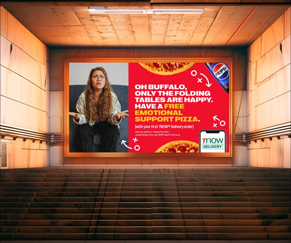 For those fans, the playoffs and especially the day of The Big Game can be...hard. So, 7-Eleven is turning their BOGO pizza offer (when ordered for delivery on the 7NOW App) into a free “Emotional Support Pizza” for the fans whose teams don’t make it to the big game.